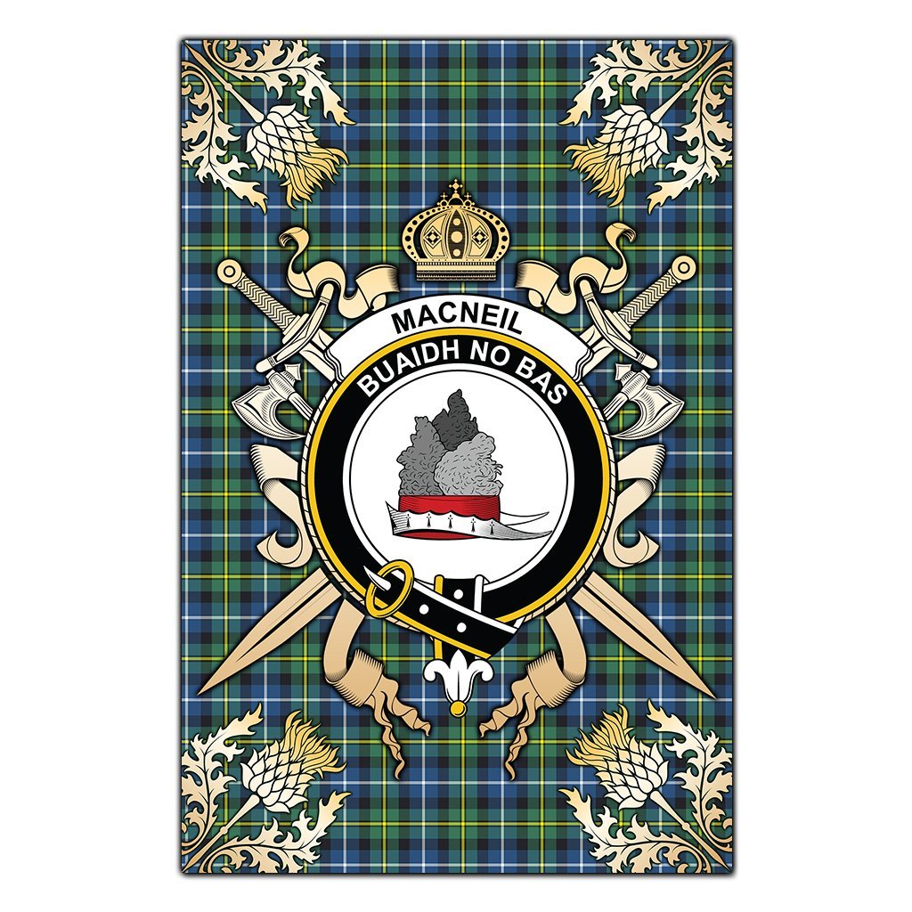 MacNeil of Barra Ancient Tartan Crest Black Garden Flag - Gold Thistle Style