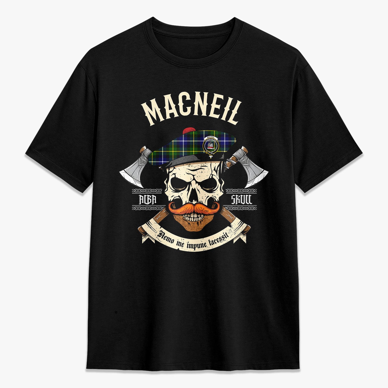 MacNeil of Barra Modern Tartan Crest 2D T-shirt - Alba Skull Style