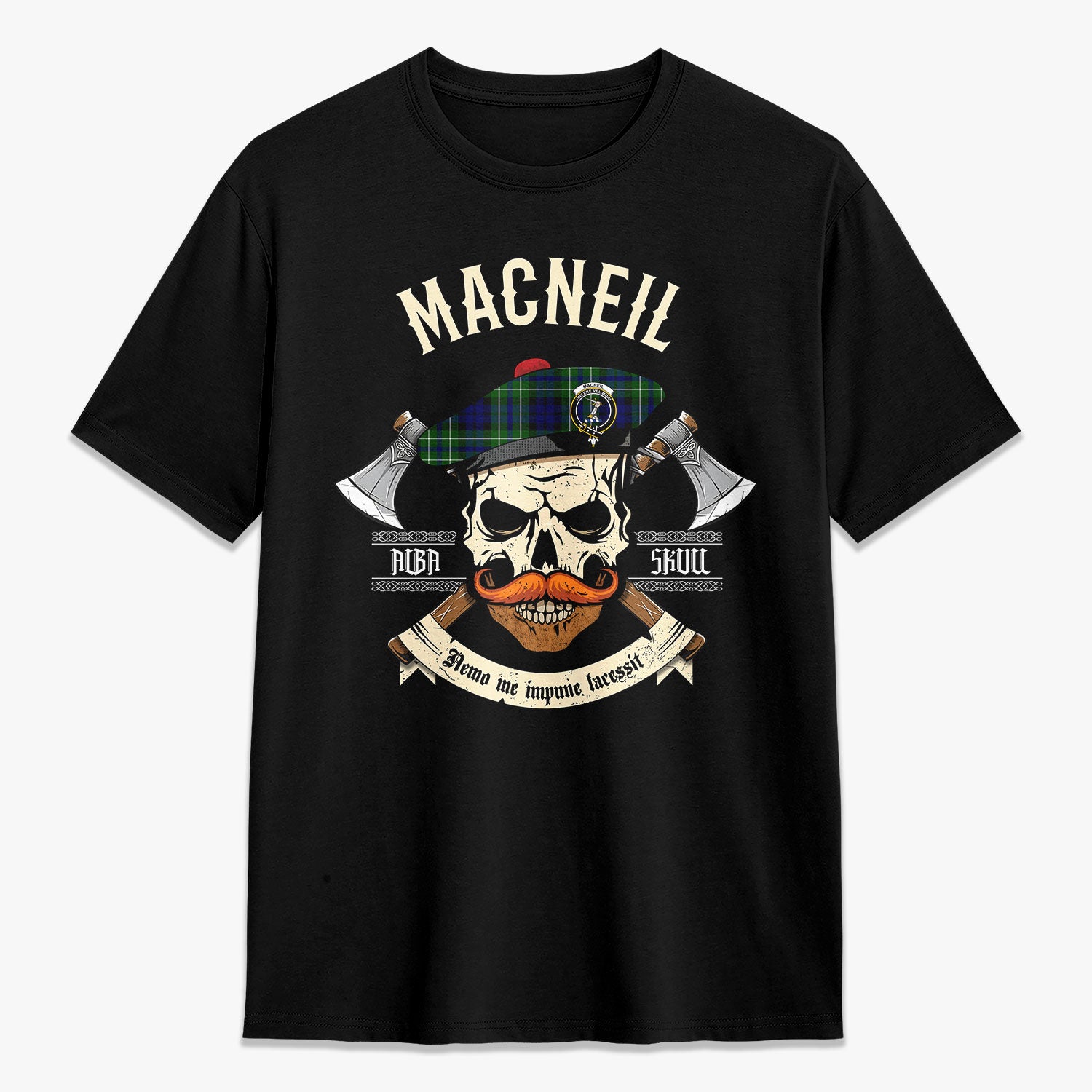 MacNeil of Colonsay Modern Tartan Crest 2D T-shirt - Alba Skull Style,