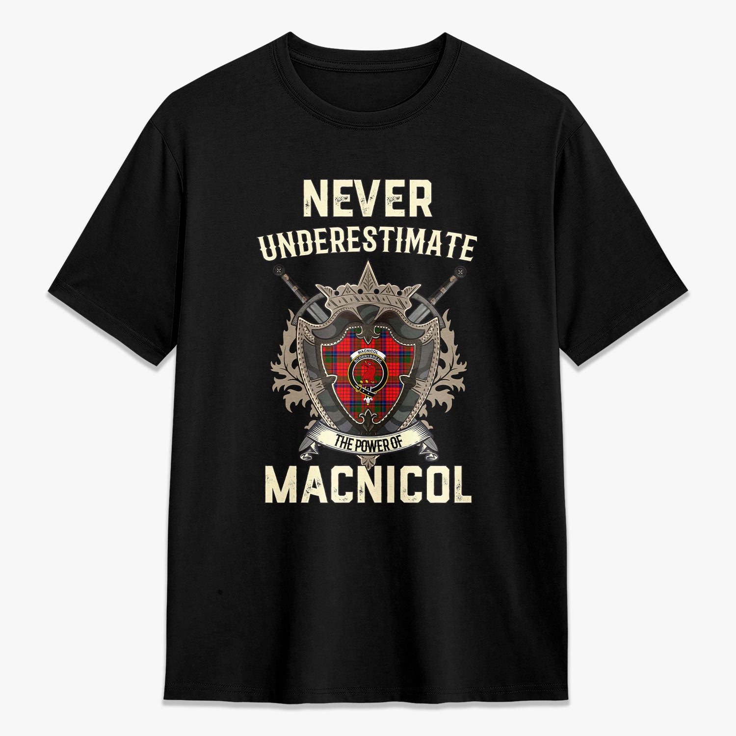 MacNicol (of Scorrybreac) Tartan Crest 2D T-shirt - Never Underestimate Style