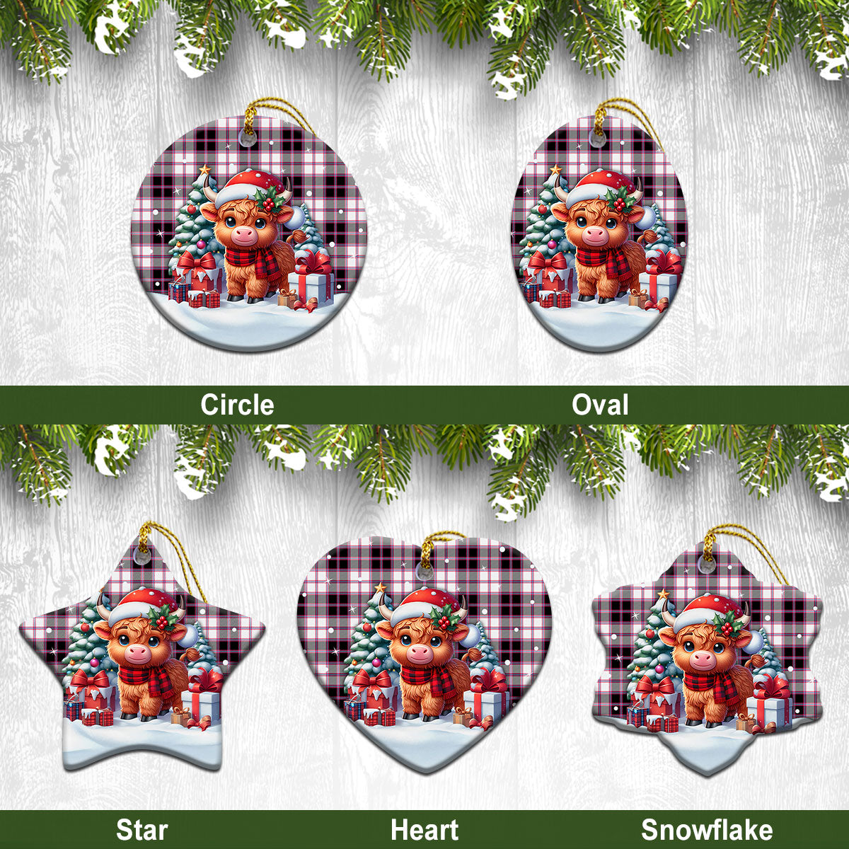 MacPherson Hunting Modern Tartan Christmas Ceramic Ornament - Highland Cow Winter Style