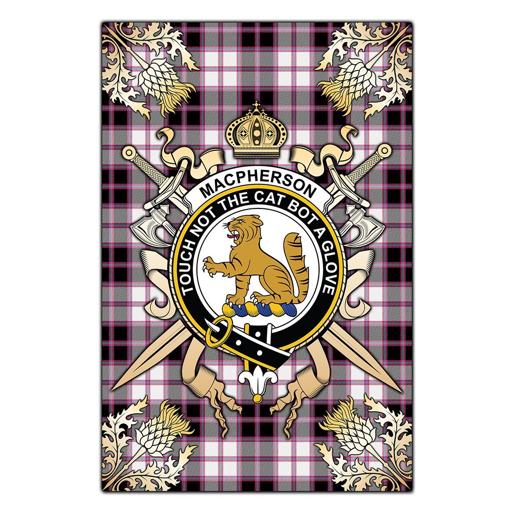 MacPherson Hunting Modern Tartan Crest Black Garden Flag - Gold Thistle Style