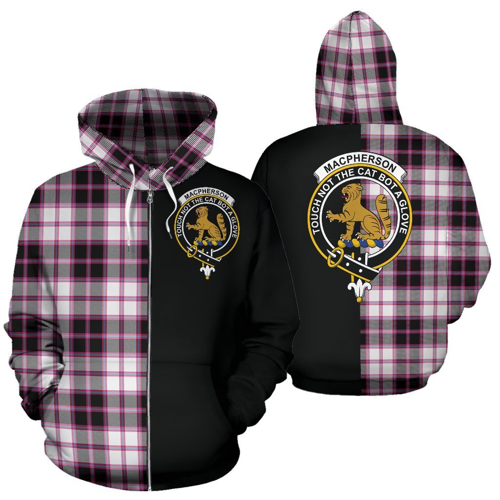 MacPherson Hunting Modern Tartan Crest Zipper Hoodie - Half Of Me Style