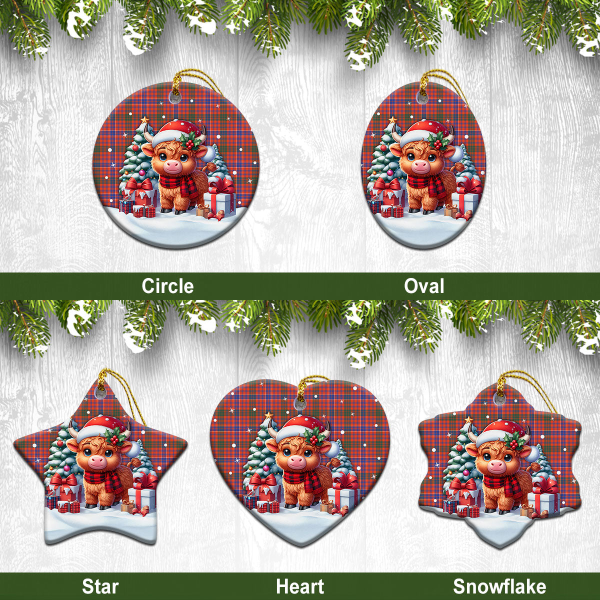 MacRae Ancient Tartan Christmas Ceramic Ornament - Highland Cow Winter Style