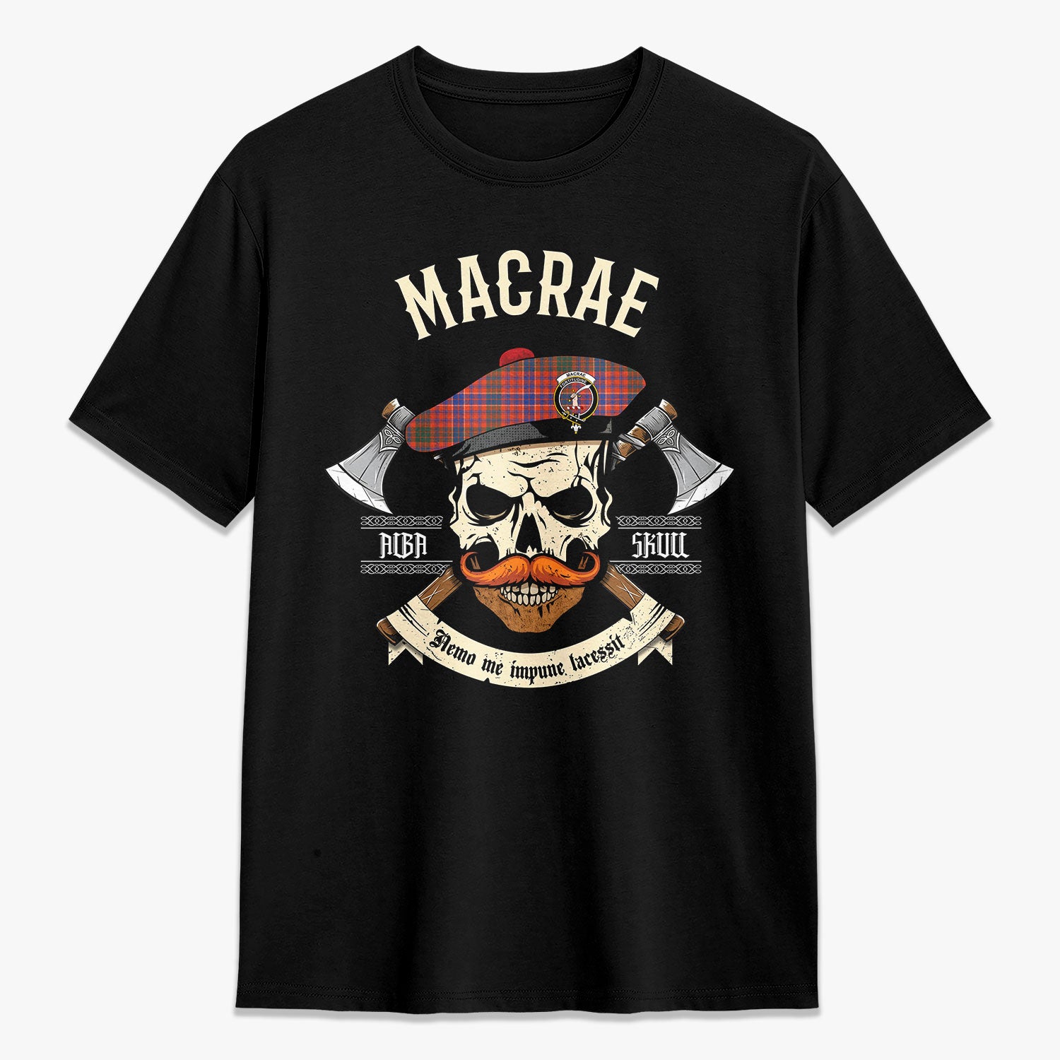 MacRae Ancient Tartan Crest 2D T-shirt - Alba Skull Style,