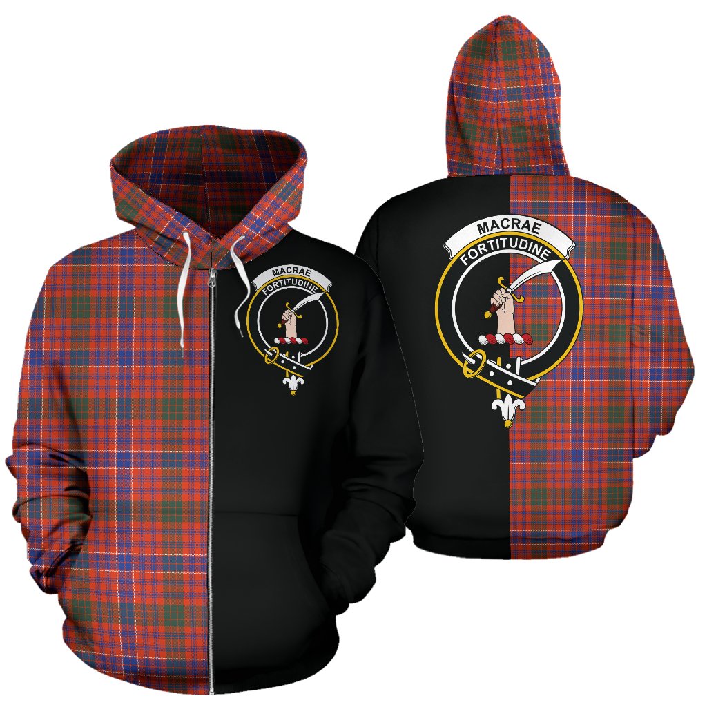 MacRae Ancient Tartan Crest Zipper Hoodie - Half Of Me Style
