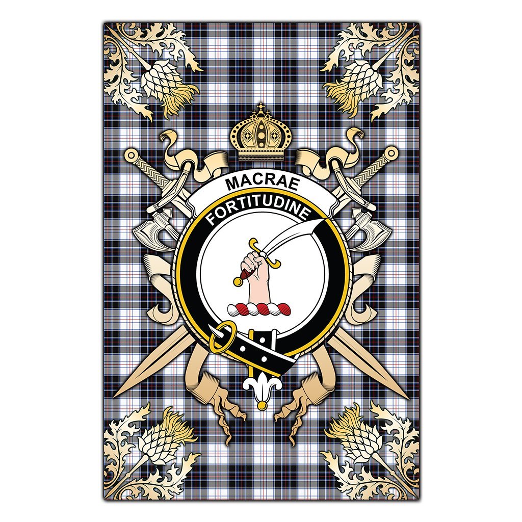 MacRae Dress Modern Tartan Crest Black Garden Flag - Gold Thistle Style