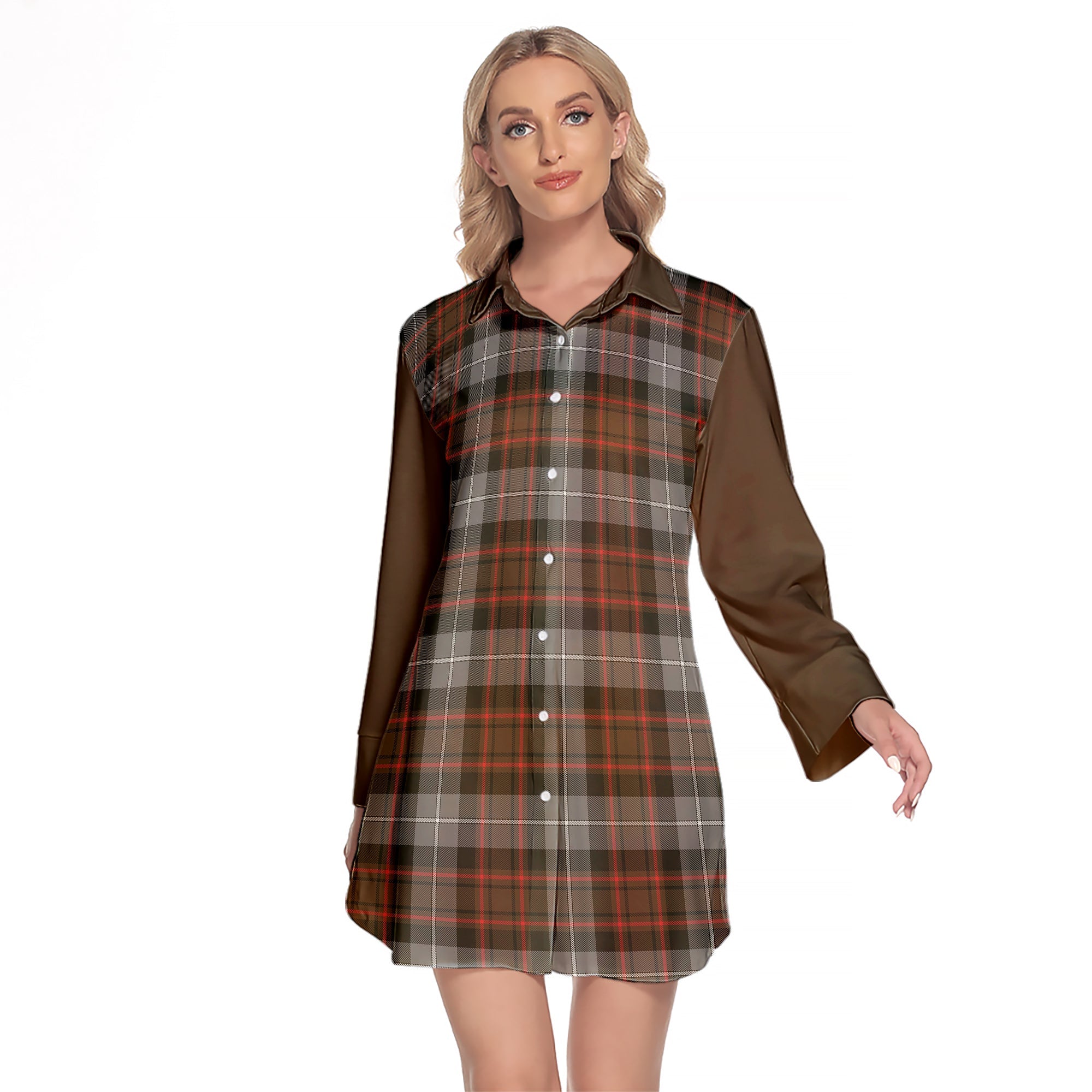 MacRae Hunting Weathered Tartan Women's Lapel Shirt Dress With Long Sleeve