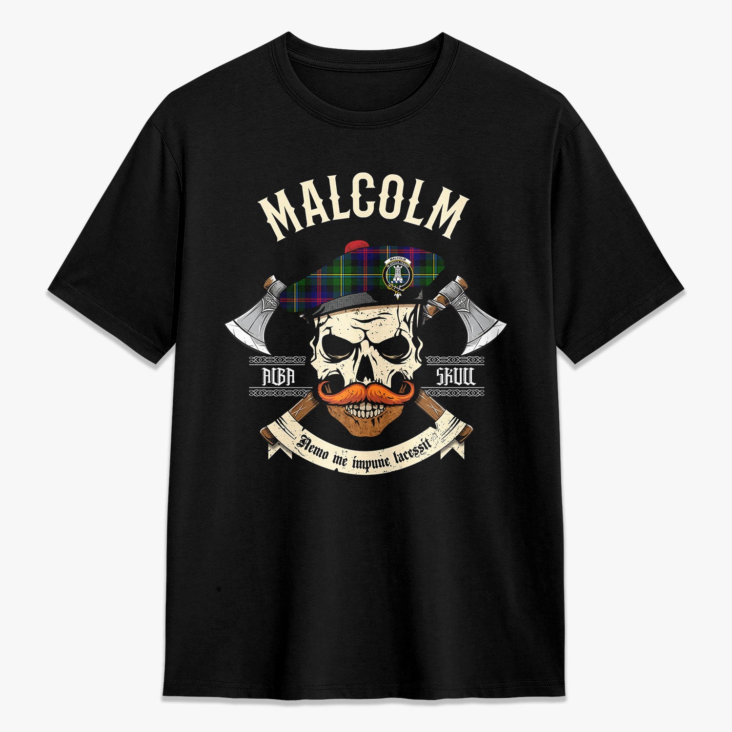 Malcolm (or MacCallum) Tartan Crest 2D T-shirt - Alba Skull Style,