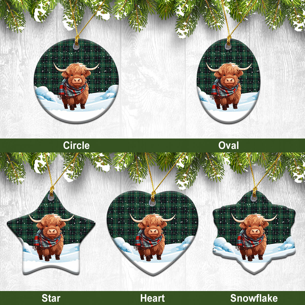 McAulay Hunting Ancient Tartan Christmas Ceramic Ornament - Highland Cows Snow Style