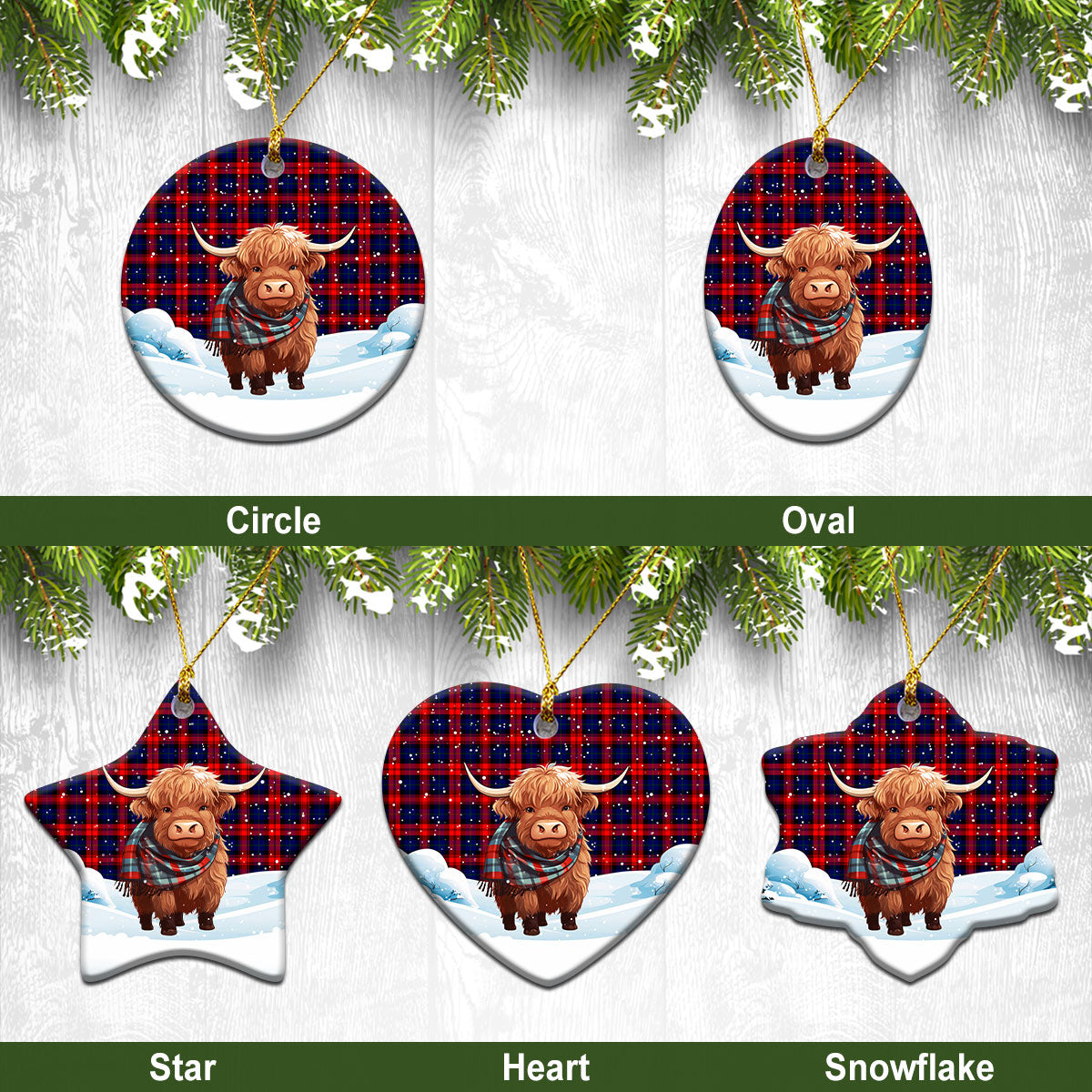 McCracken Tartan Christmas Ceramic Ornament - Highland Cows Snow Style