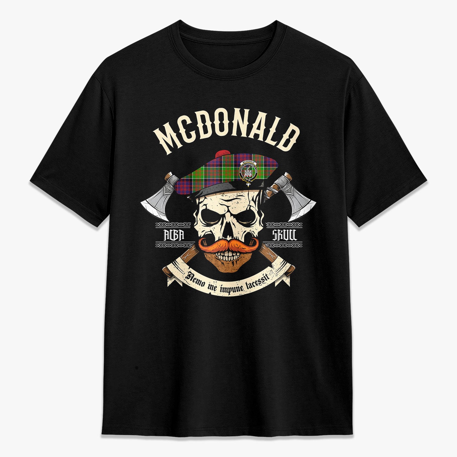 McDonald (Clan Ranald) Tartan Crest 2D T-shirt - Alba Skull Style,