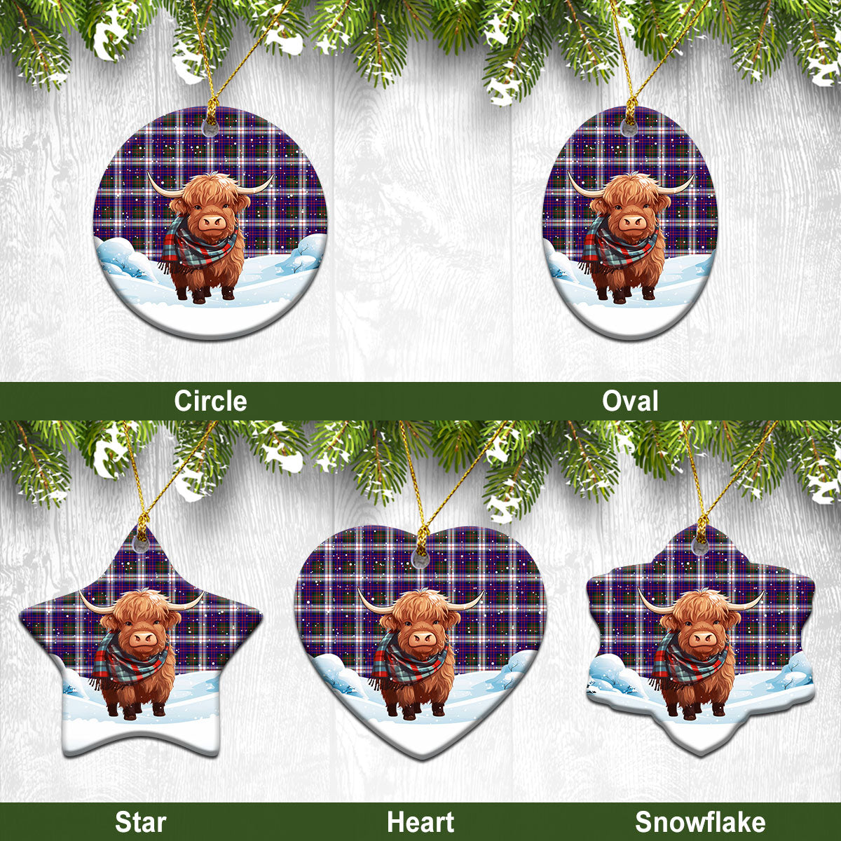 McDonald Dress Modern Tartan Christmas Ceramic Ornament - Highland Cows Snow Style