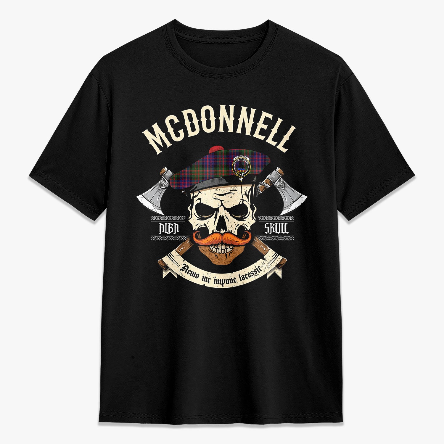 McDonnell of Glengarry Modern Tartan Crest 2D T-shirt - Alba Skull Style,