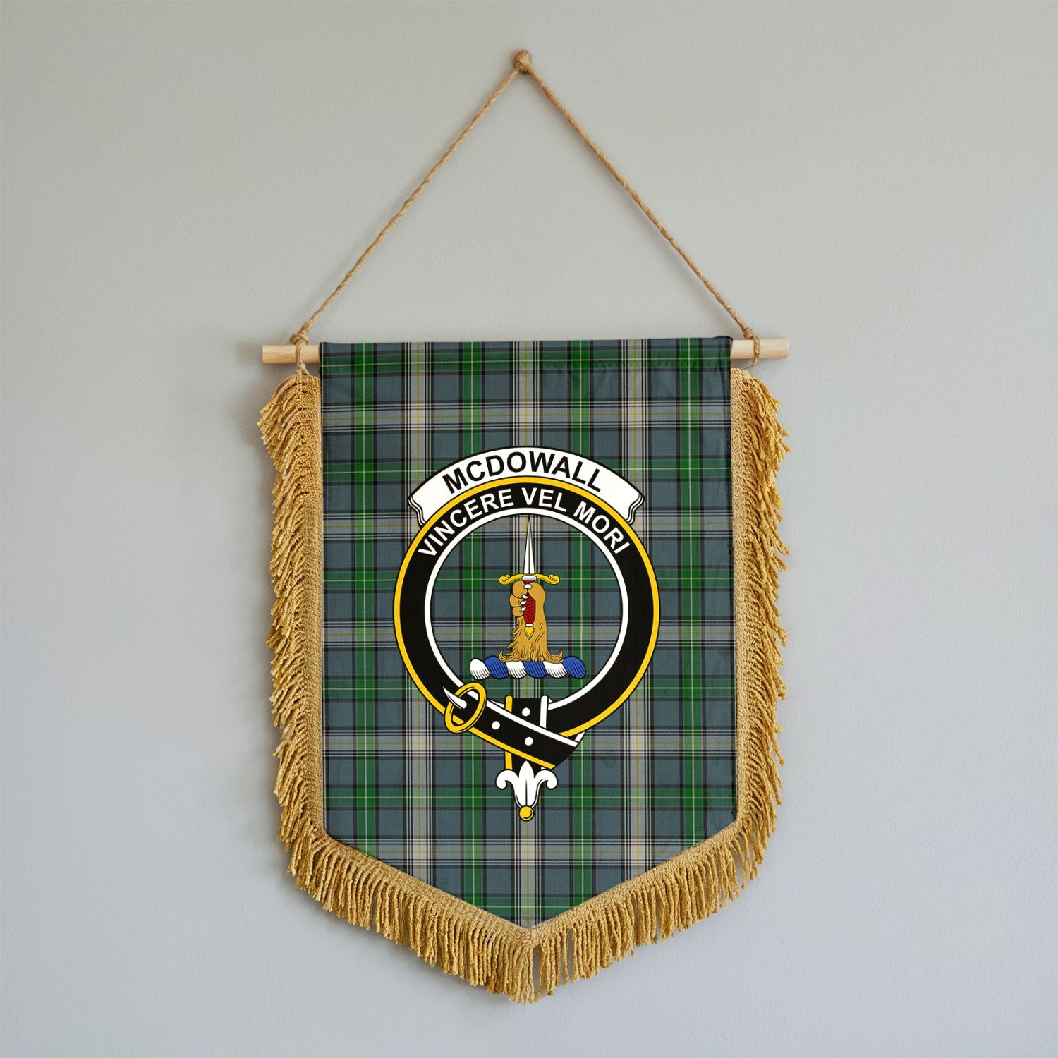 McDowall Tartan Crest Wall Hanging Banner - Wood Pole