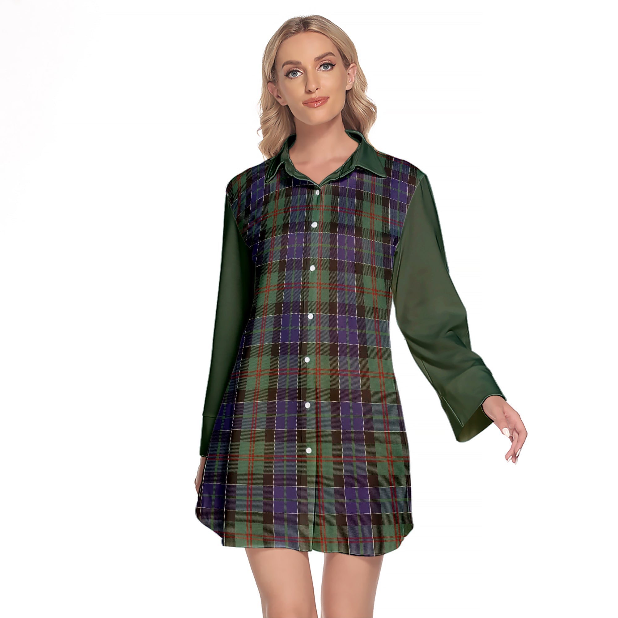 McFadzen 02 Tartan Women's Lapel Shirt Dress With Long Sleeve