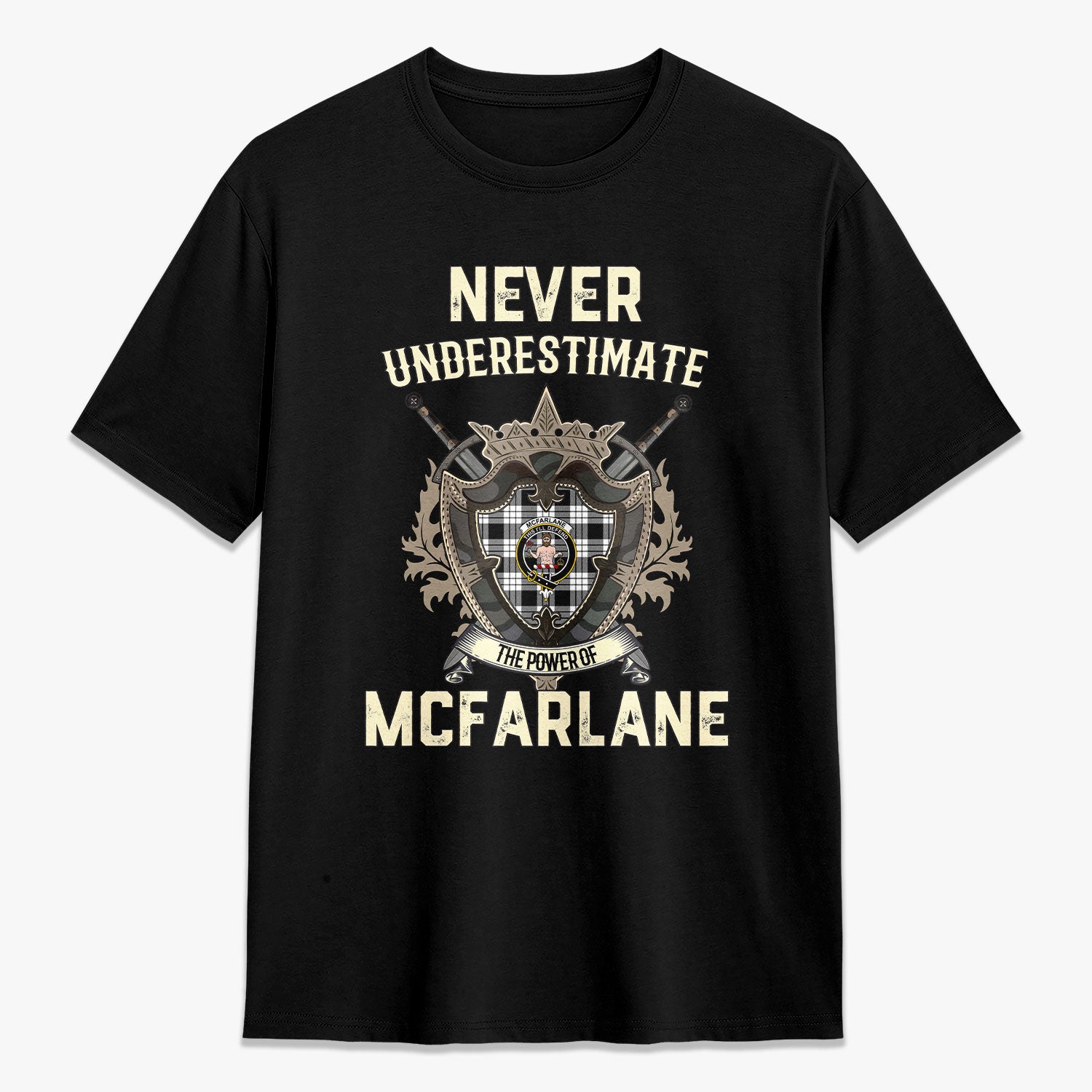McFarlane Black - White Tartan Crest 2D T-shirt - Never Underestimate Style