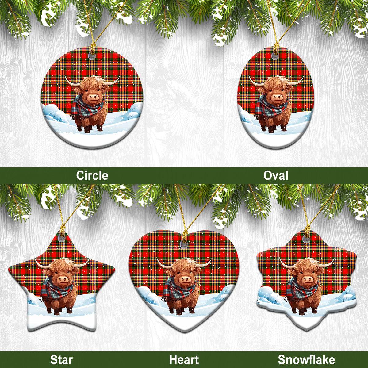 McGill Modern Tartan Christmas Ceramic Ornament - Highland Cows Snow Style