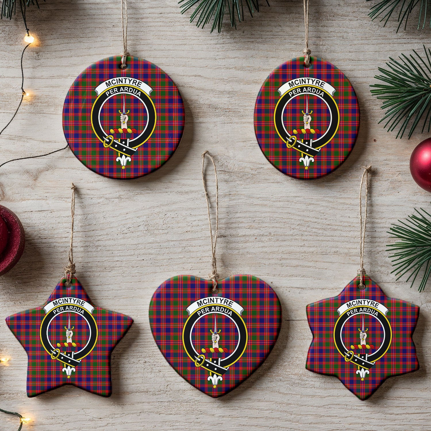 McIntyre Modern Tartan Crest Christmas Ceramic Ornament