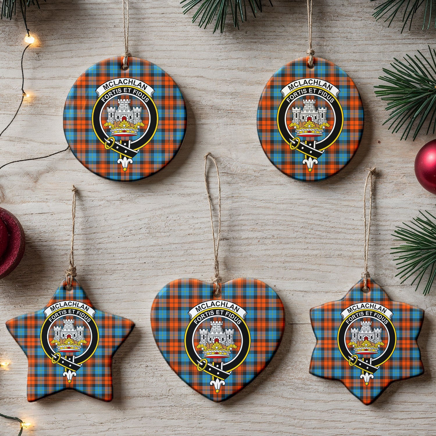 McLachlan Ancient Tartan Crest Christmas Ceramic Ornament