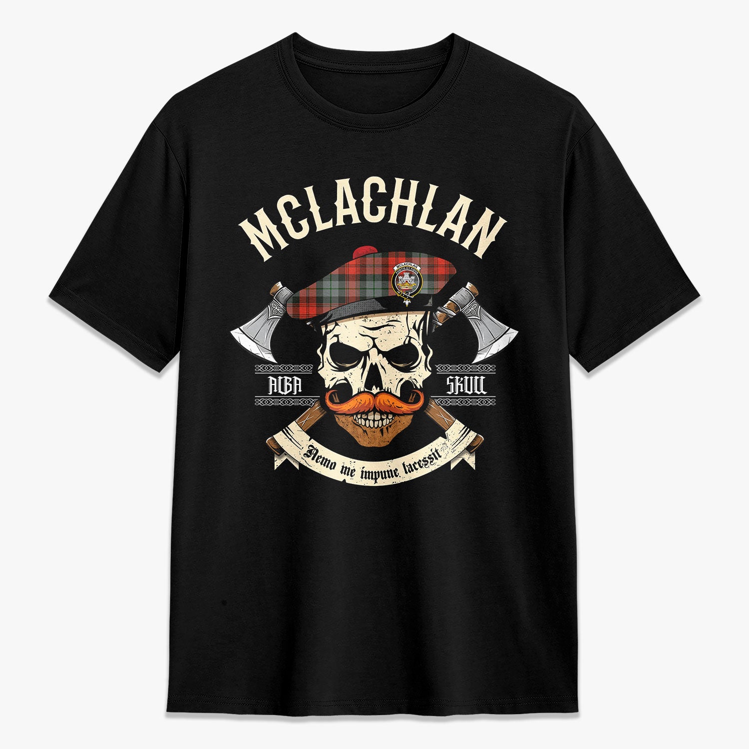 McLachlan Weathered Tartan Crest 2D T-shirt - Alba Skull Style,