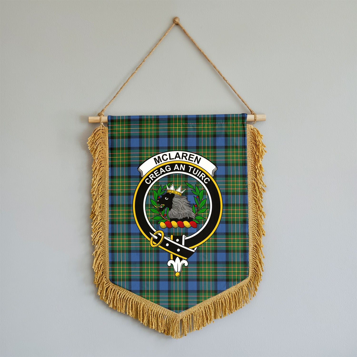 McLaren Ancient Tartan Crest Wall Hanging Banner - Wood Pole