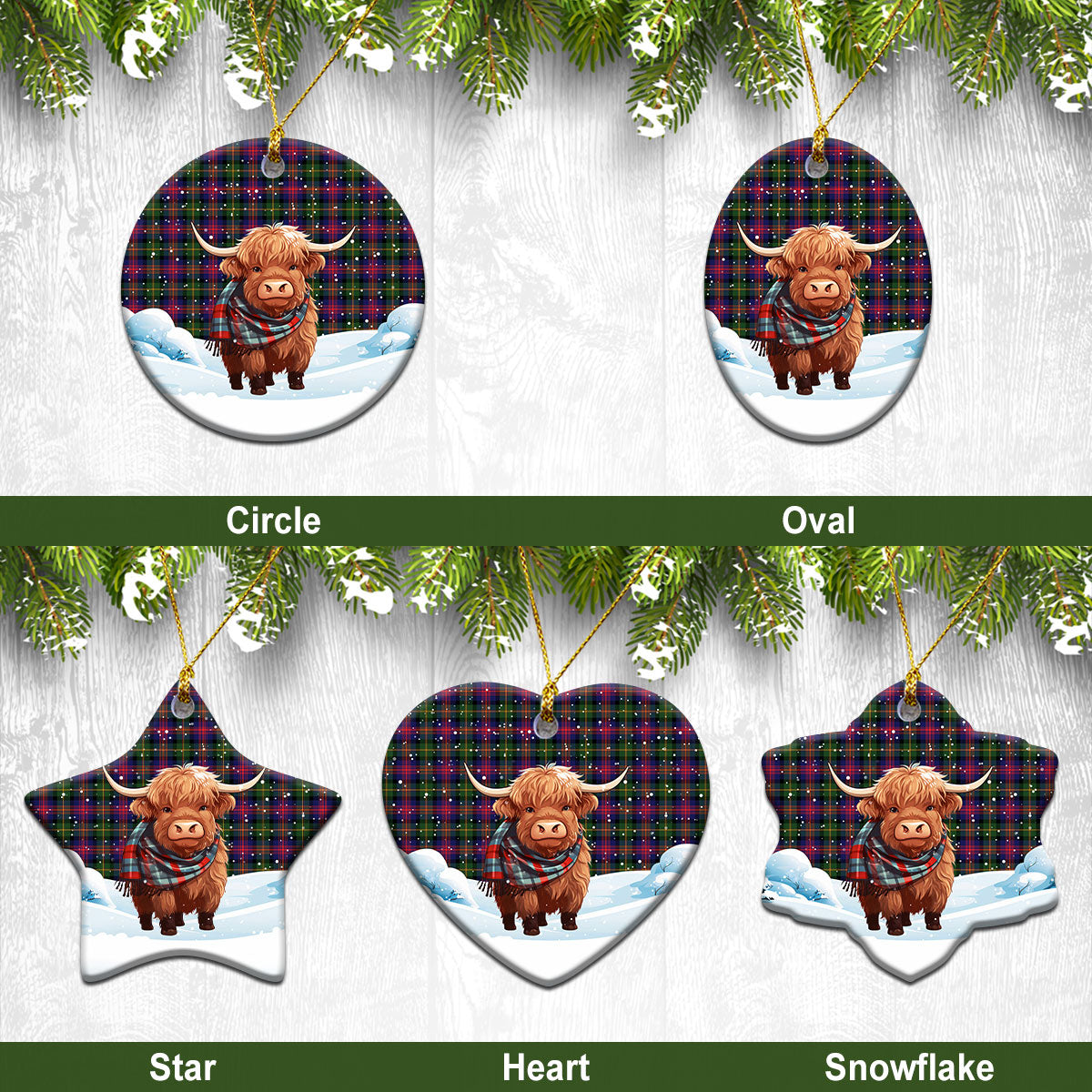 McLennan Modern Tartan Christmas Ceramic Ornament - Highland Cows Snow Style