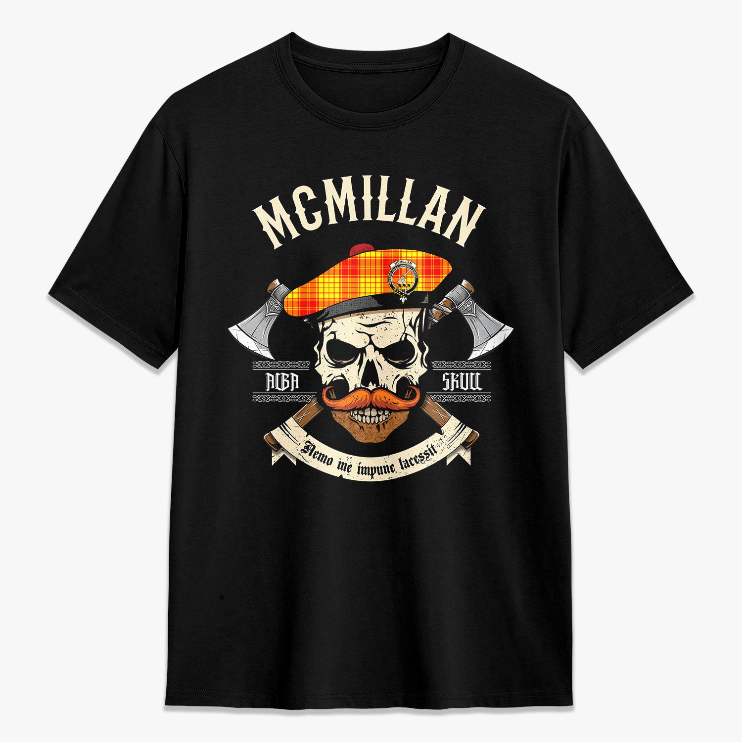 McMillan Clan Tartan Crest 2D T-shirt - Alba Skull Style,