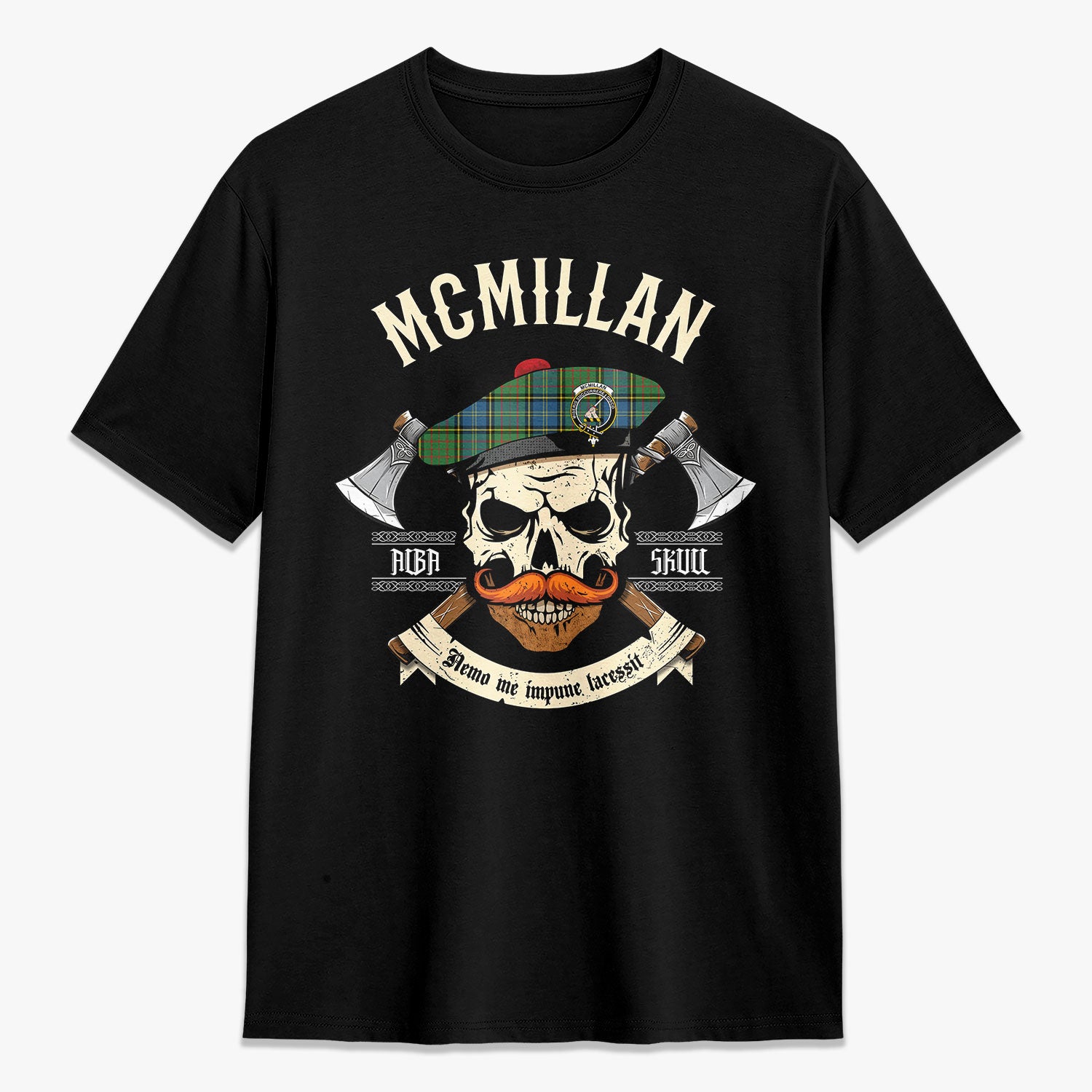 McMillan Hunting Ancient Tartan Crest 2D T-shirt - Alba Skull Style,