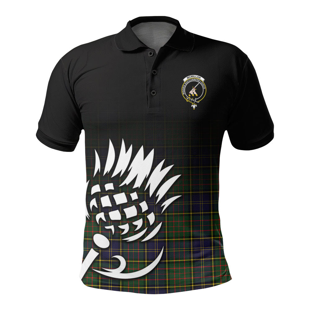 McMillan Hunting Modern Tartan Crest Polo Shirt - Thistle Black Style