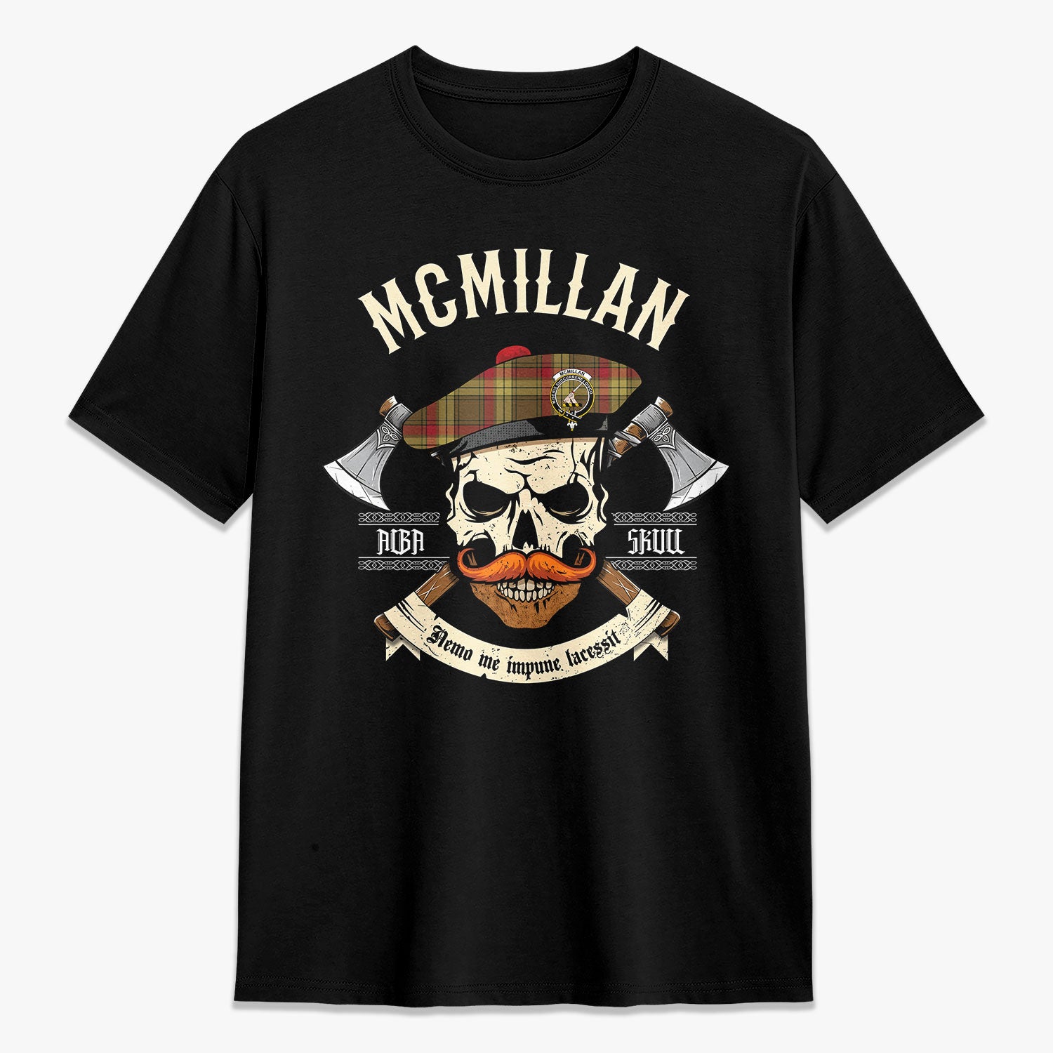 McMillan Old Weathered Tartan Crest 2D T-shirt - Alba Skull Style