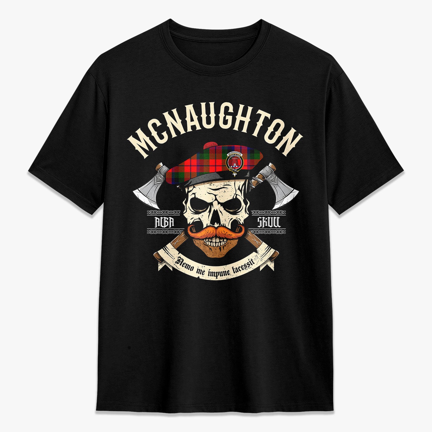 McNaughton Modern Tartan Crest 2D T-shirt - Alba Skull Style,