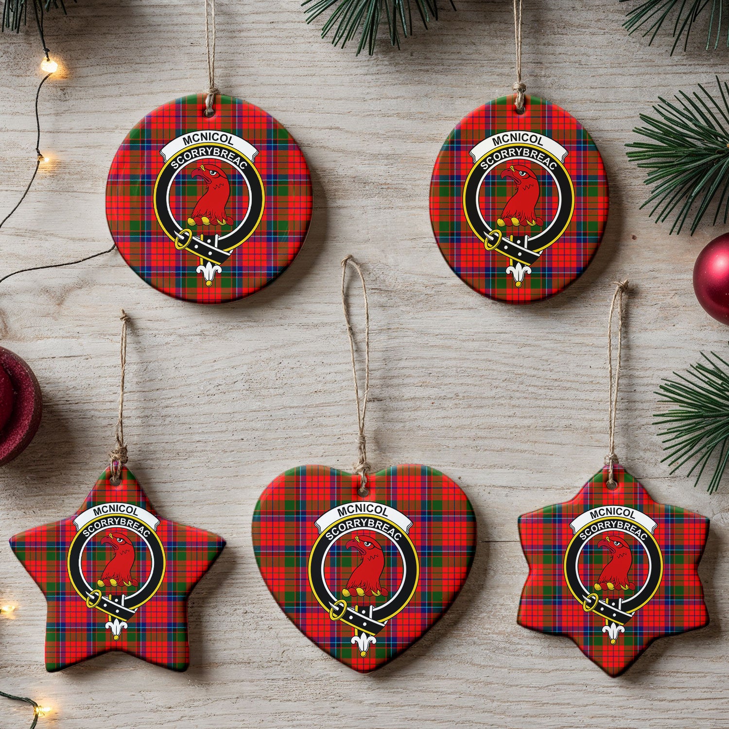 McNicol (of Scorrybreac) Tartan Crest Christmas Ceramic Ornament