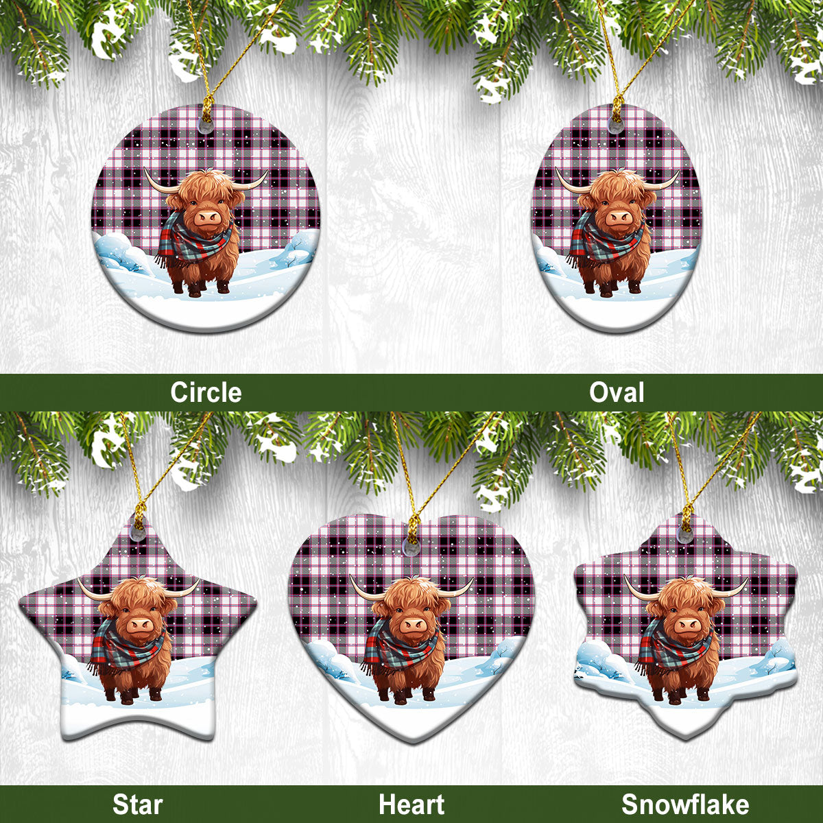 McPherson Hunting Modern Tartan Christmas Ceramic Ornament - Highland Cows Snow Style