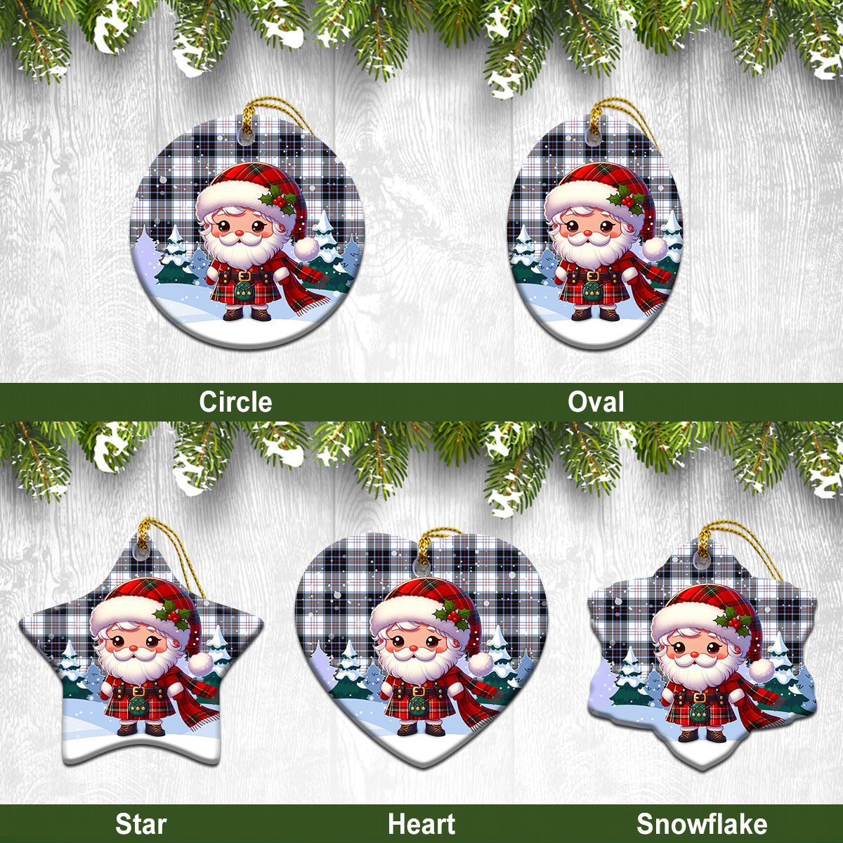 McRae Dress Modern Tartan Christmas Ceramic Ornament - Santa Claus In Kilt Style