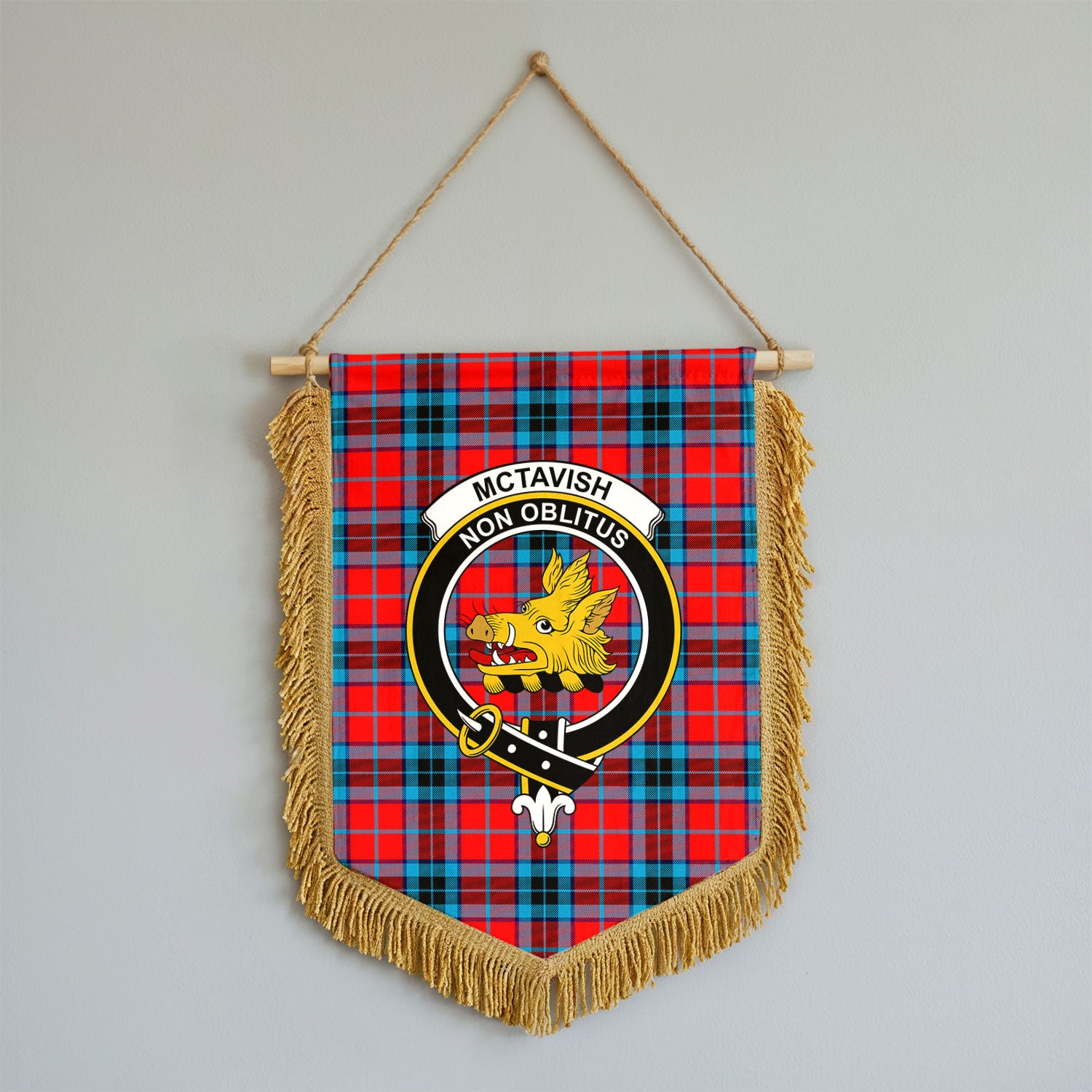 McTavish Modern Tartan Crest Wall Hanging Banner - Wood Pole
