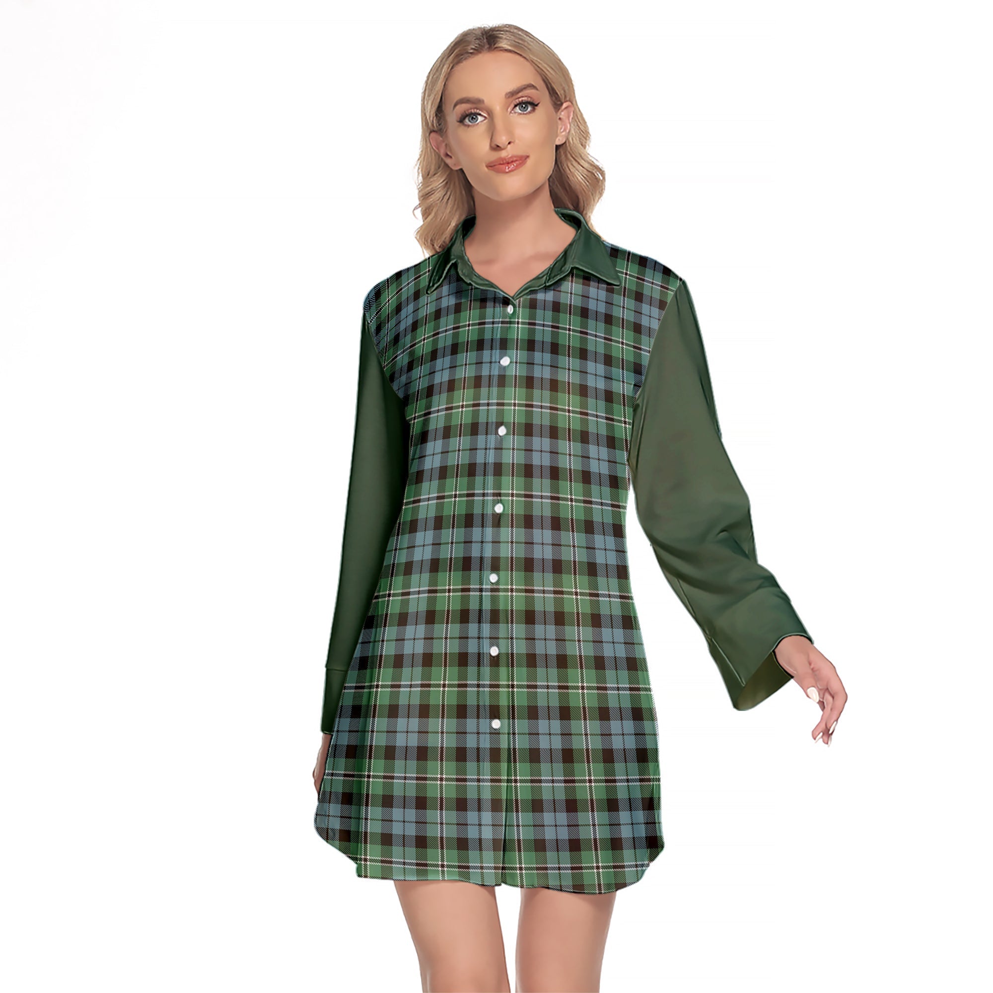 Melville Ancient Tartan Women's Lapel Shirt Dress With Long Sleeve