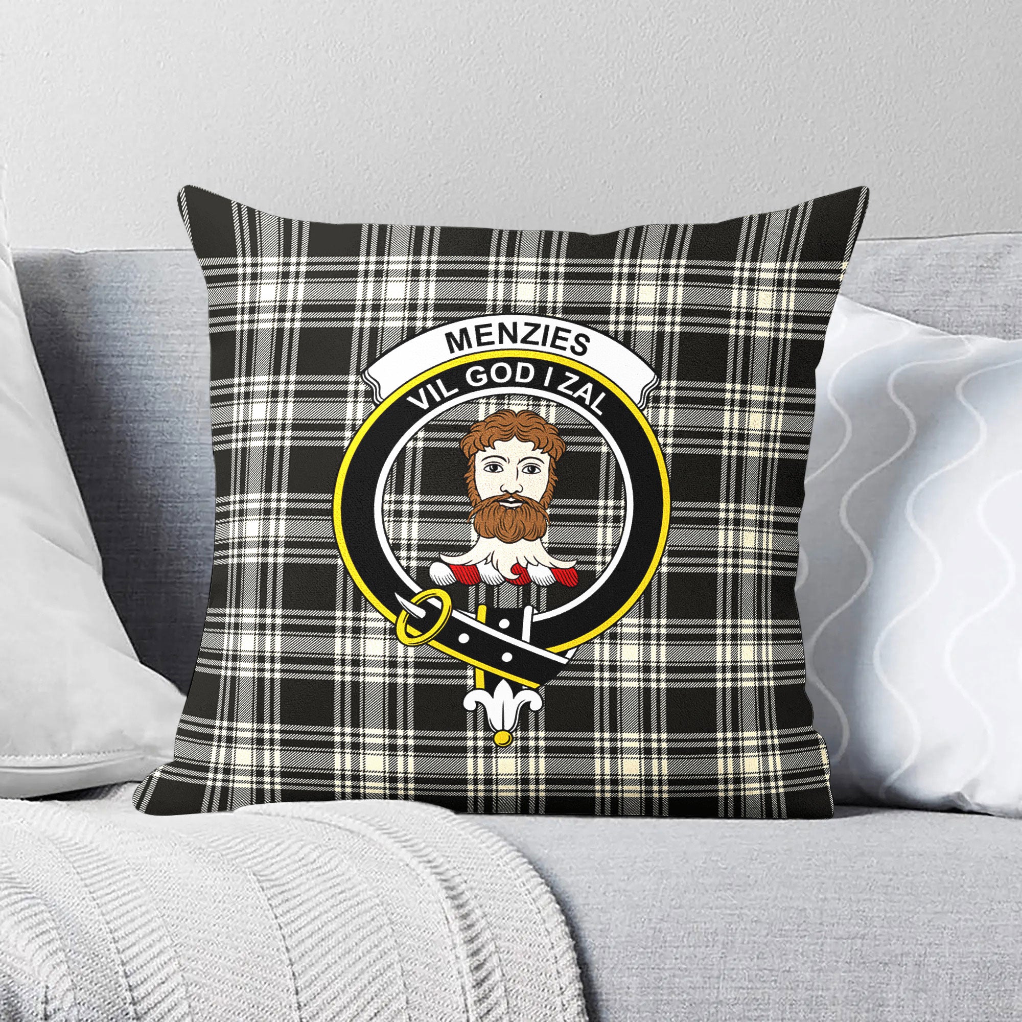 Menzies Black - White Ancient Tartan Crest Pillow Cover
