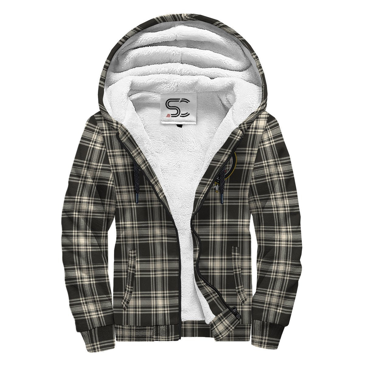 Menzies Black & White Ancient Tartan Crest Sherpa Hoodie