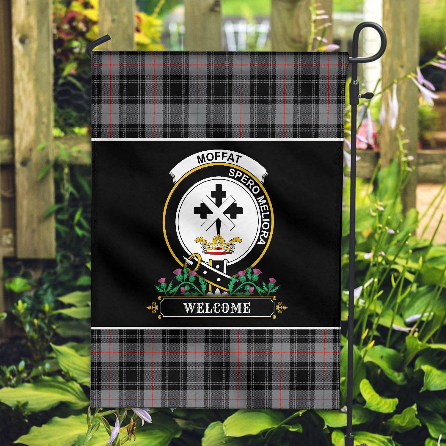 Moffat Modern Tartan Crest Garden Flag - Welcome Style