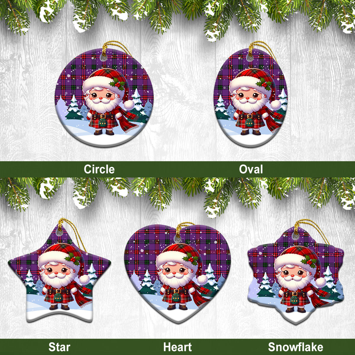 Montgomery Modern Tartan Christmas Ceramic Ornament - Santa Claus In Kilt Style