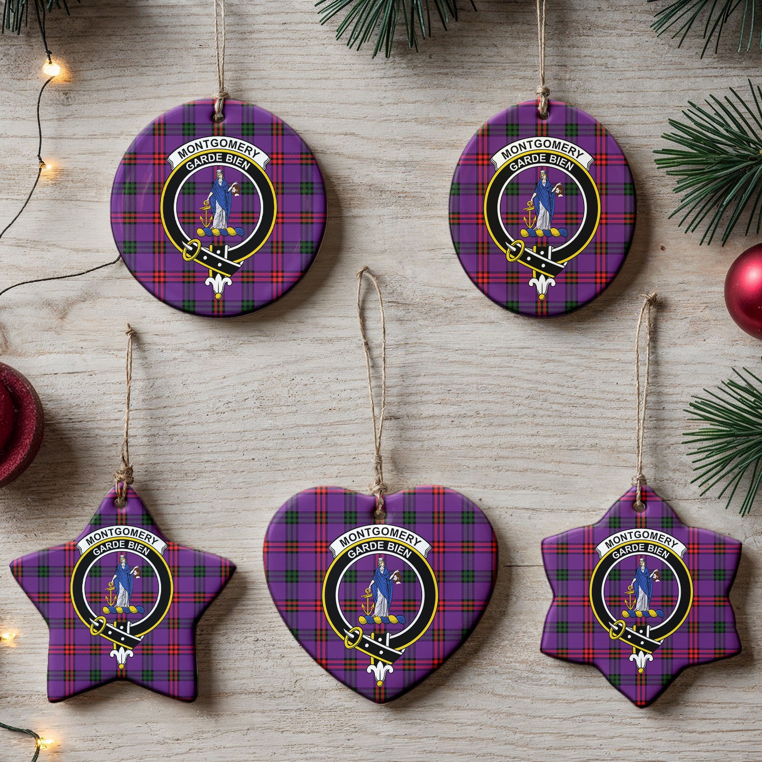 Montgomery Modern Tartan Crest Christmas Ceramic Ornament