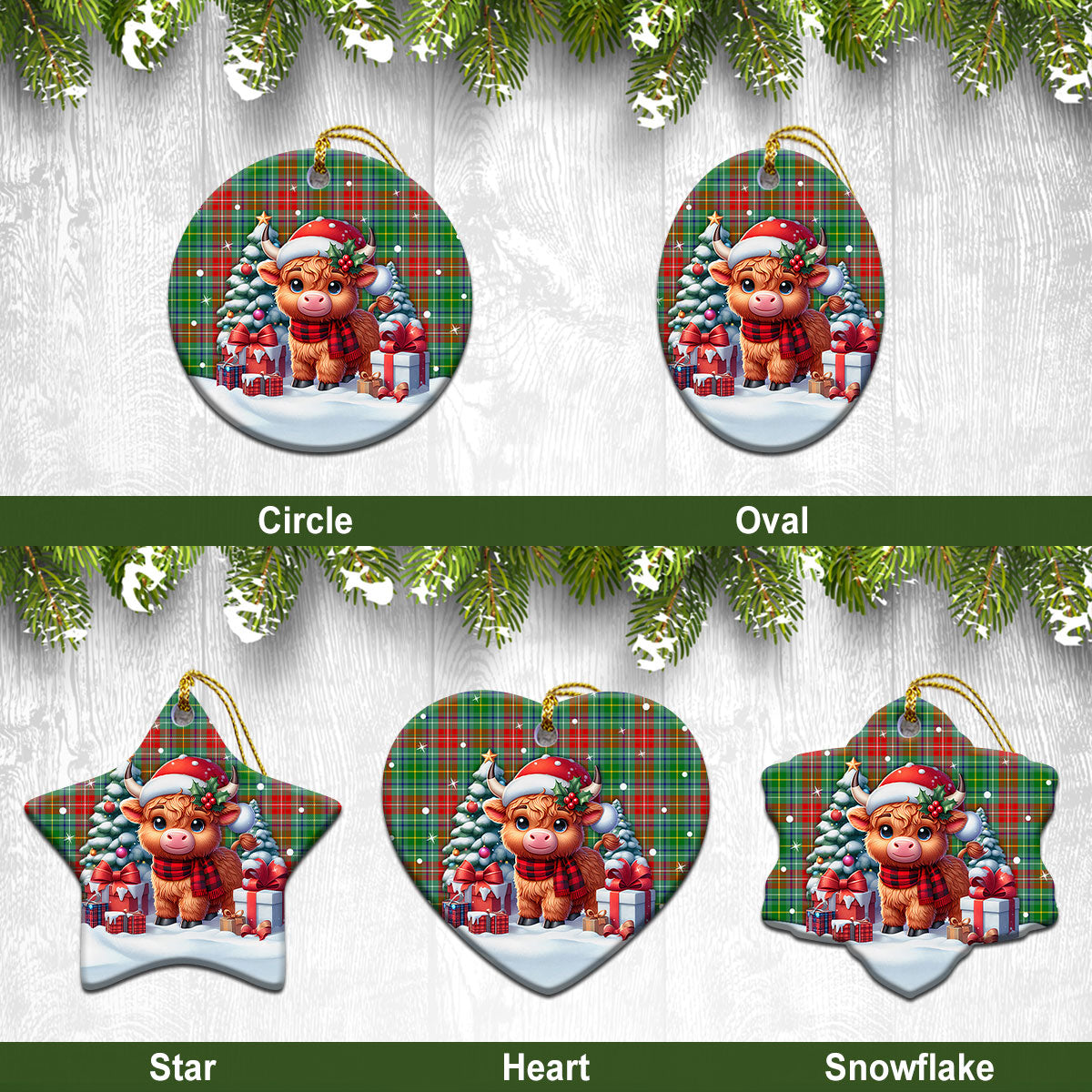 Muirhead Tartan Christmas Ceramic Ornament - Highland Cow Winter Style