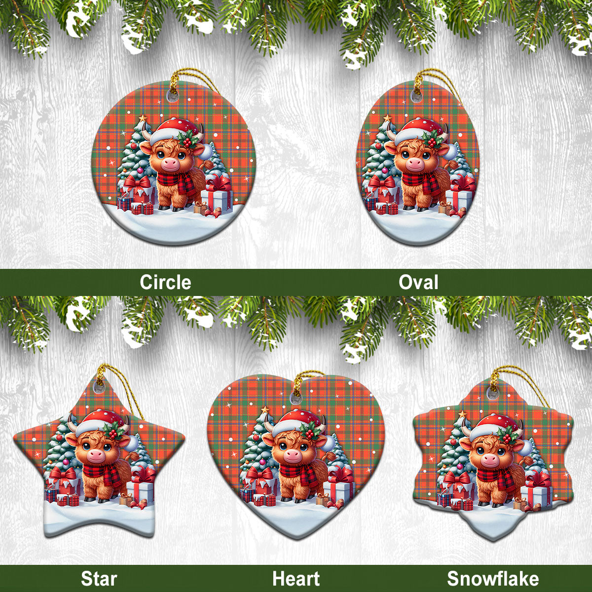 Munro Ancient Tartan Christmas Ceramic Ornament - Highland Cow Winter Style