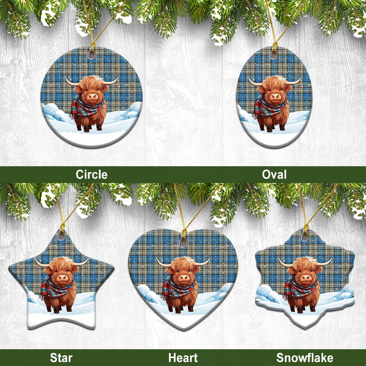 Napier Ancient Tartan Christmas Ceramic Ornament - Highland Cows Snow Style