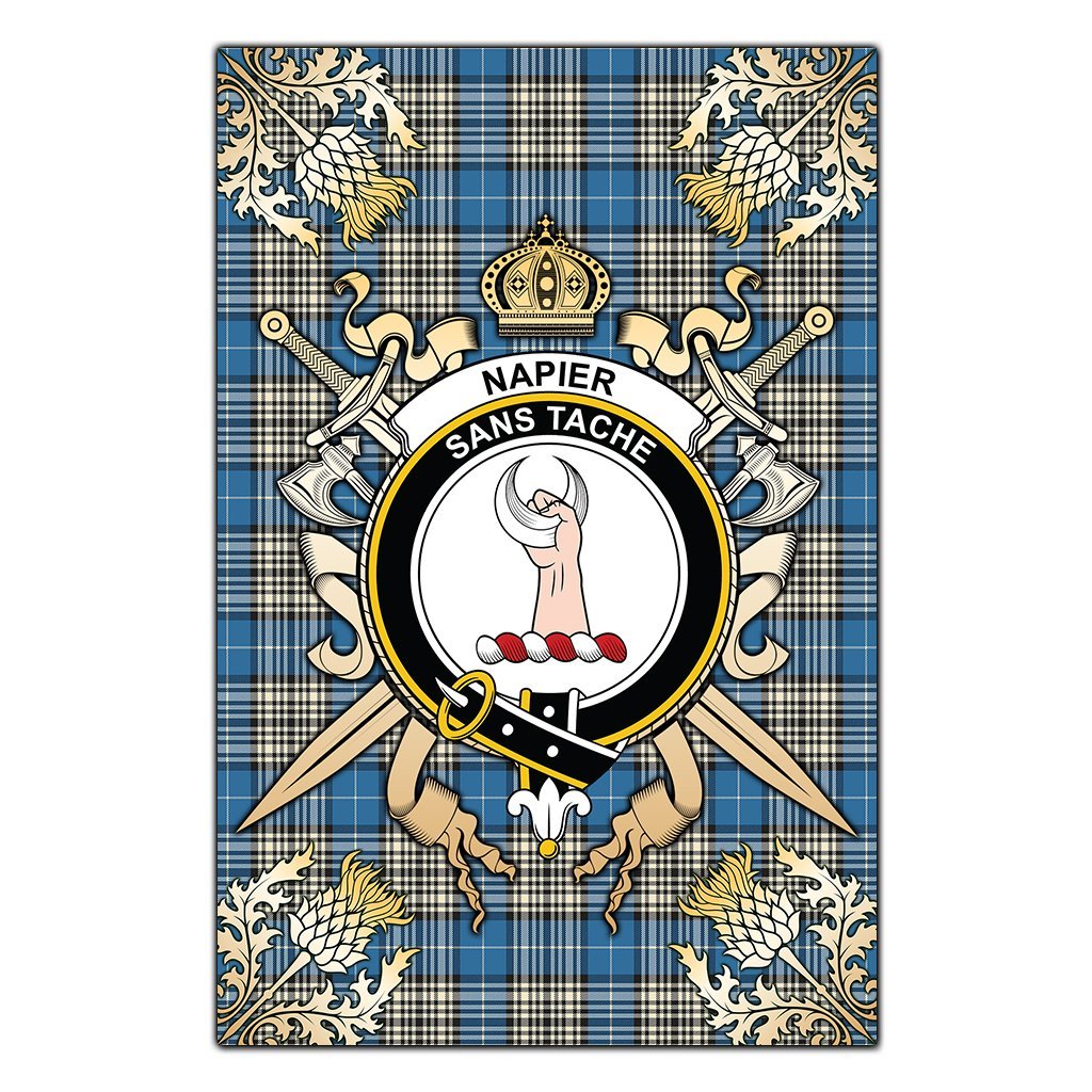 Napier Ancient Tartan Crest Black Garden Flag - Gold Thistle Style