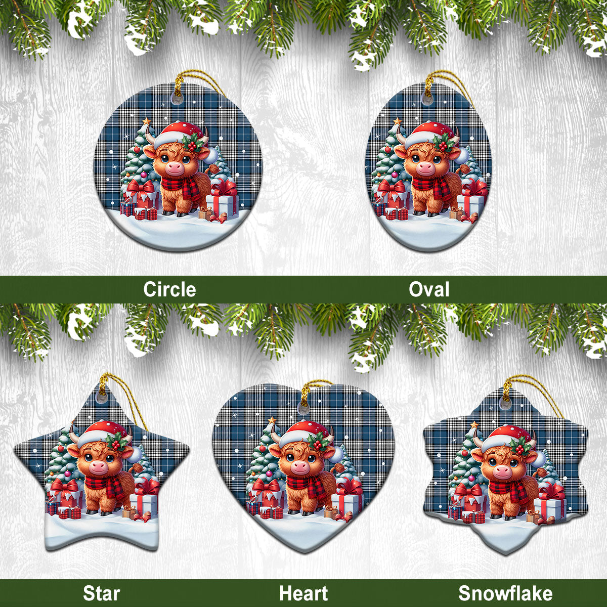 Napier Modern Tartan Christmas Ceramic Ornament - Highland Cow Winter Style