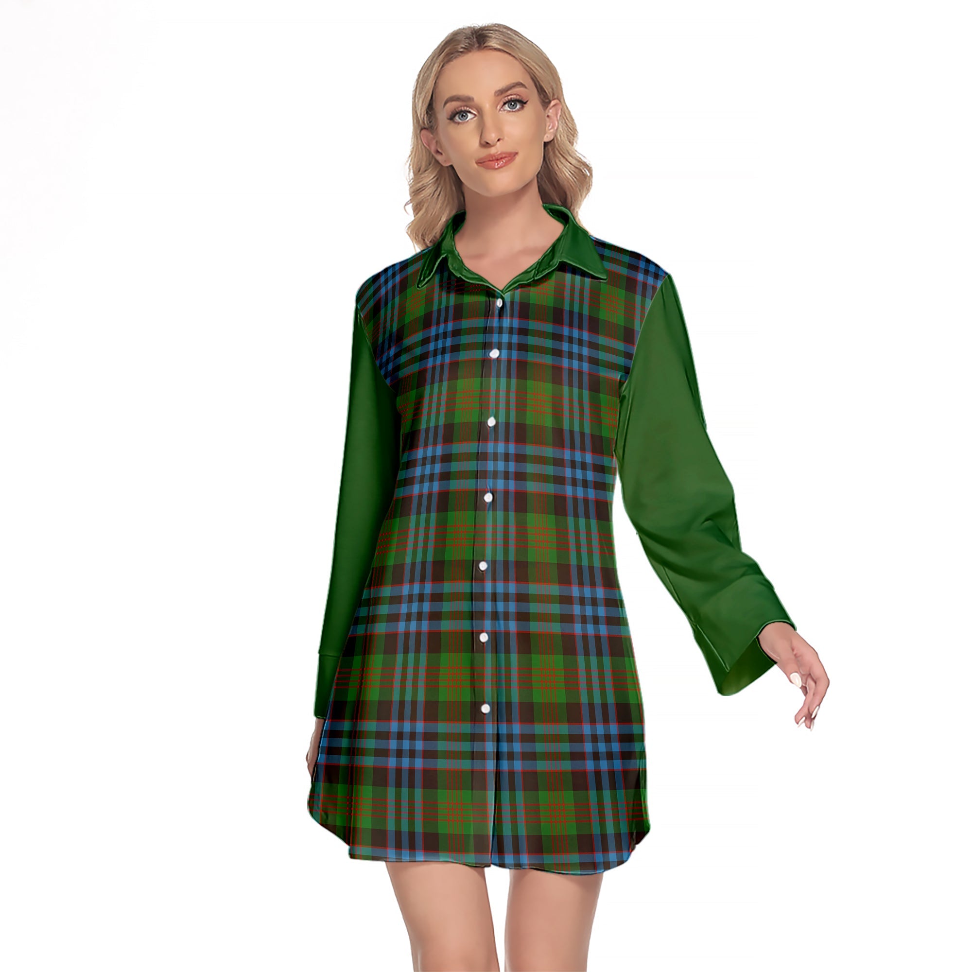 Newlands Of Lauriston Tartan Women's Lapel Shirt Dress With Long Sleeve