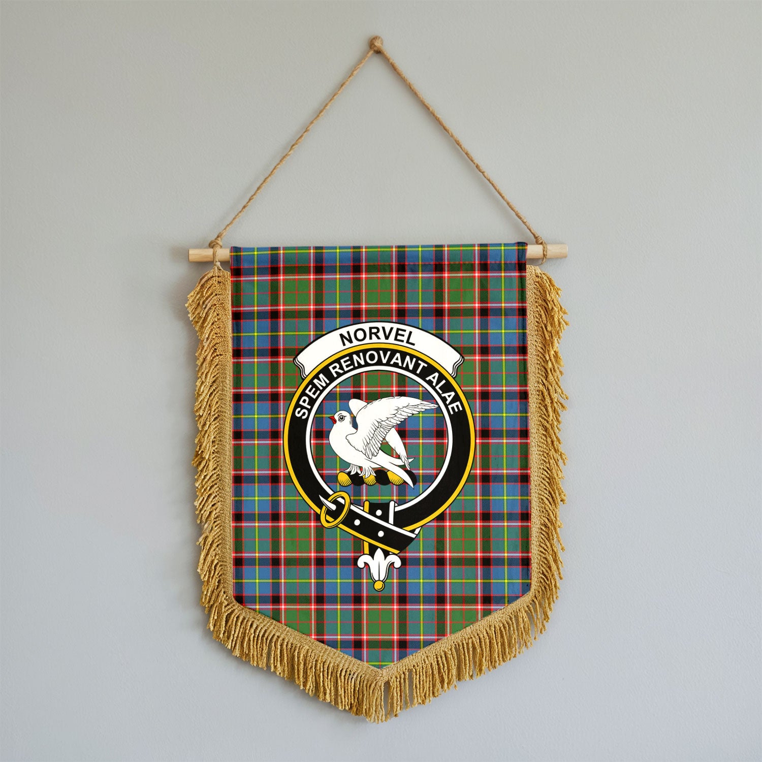 Norvel (or Norvill) Tartan Crest Wall Hanging Banner - Wood Pole
