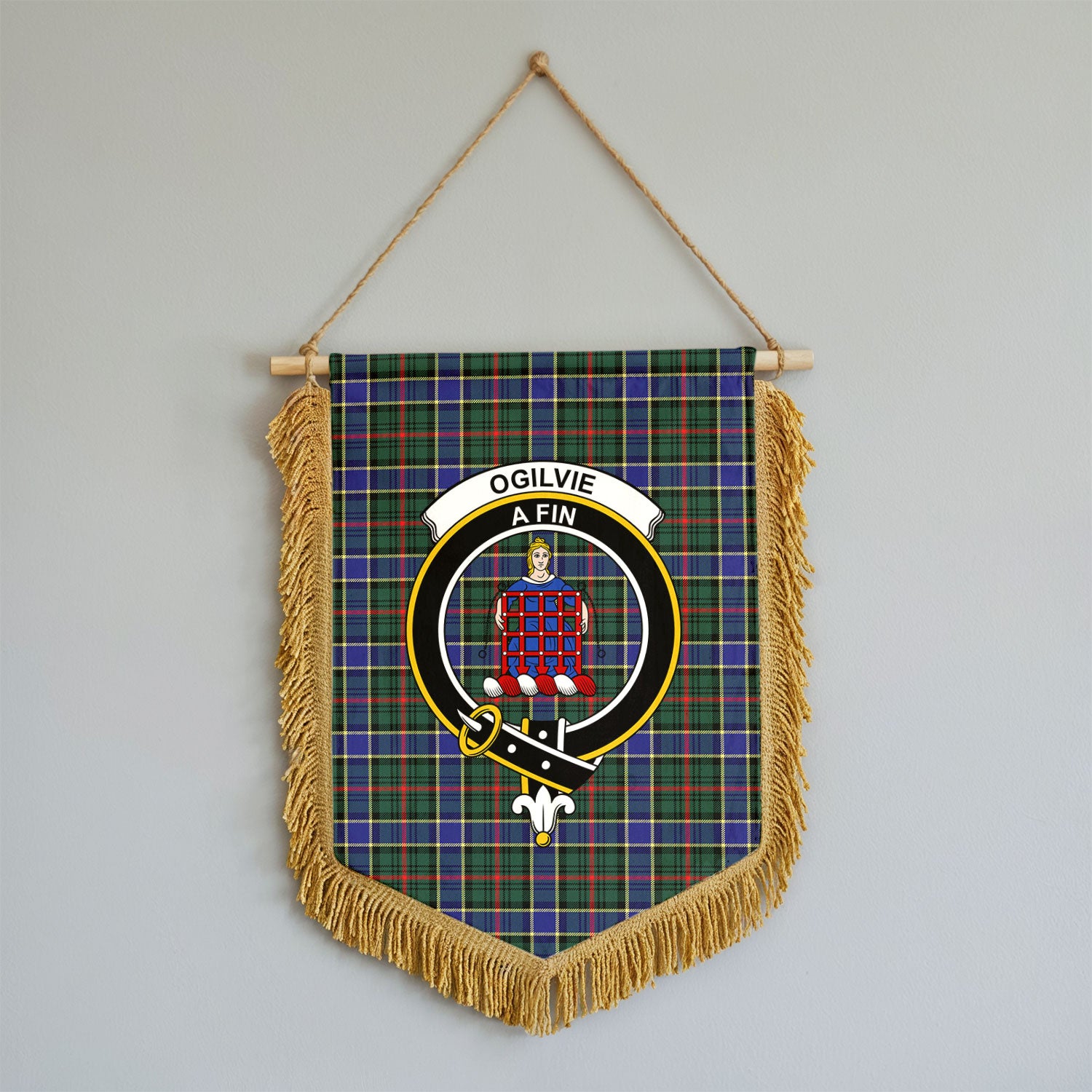 Ogilvie Hunting Modern Tartan Crest Wall Hanging Banner - Wood Pole